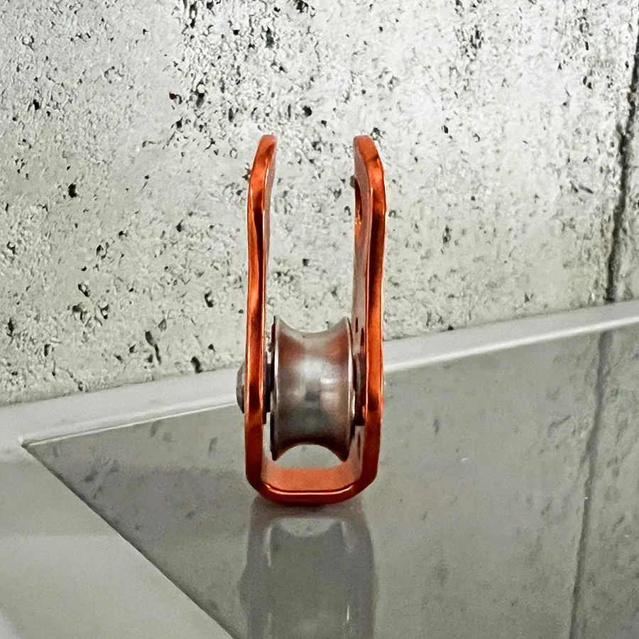 Pojedynczy aluminiowy bloczek linowy do lin o średnicy maksymalnie 12mm.